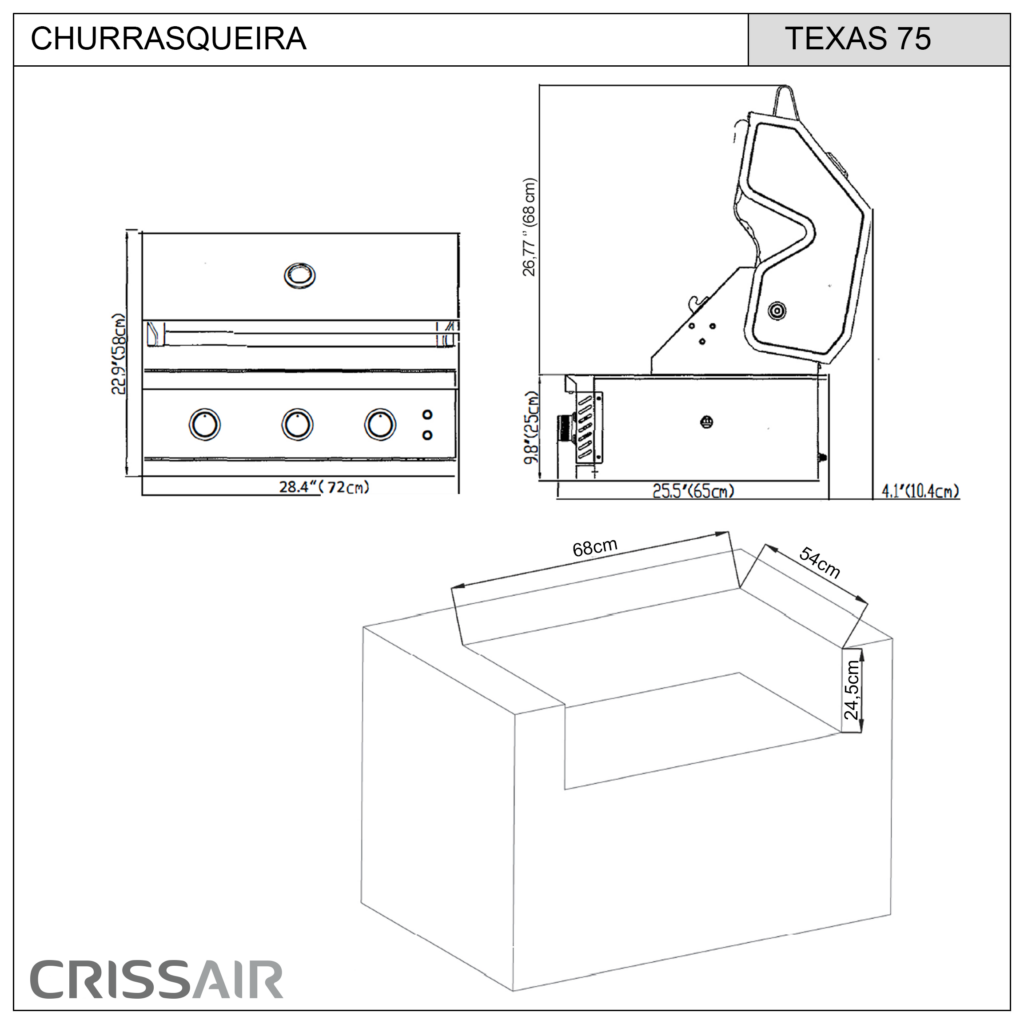 A Churrasqueira BBQ Texas 75 da Crissair eleva o conceito de churrasco com design robusto e tecnologia avançada. Fabricada em Inox 304, oferece durabilidade e elegância. Equipada com 3 queimadores a gás com de potência (40.800 BTUs), garante calor uniforme para resultados perfeitos. Com gerador de faísca e compatibilidade com GLP, a Texas 75 é a escolha ideal para quem busca praticidade e qualidade no churrasco.