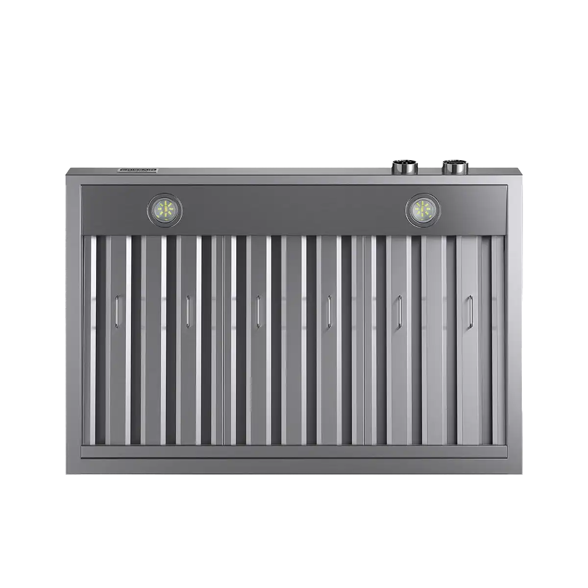 A coifa Dallas possui as medidas de 900 x 590mm, vazão de 1.500m³/HS com 3 velocidades e ruído de 65dBa. Iluminação em LED, 1 motor de 238W e pré-filtro inercial para maior eficiência.