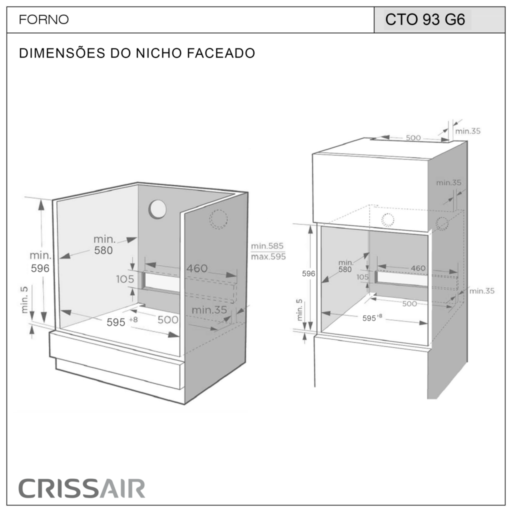 Dimensões do Nicho Faceado (LxAxP): 595 x 596 x 580 mm