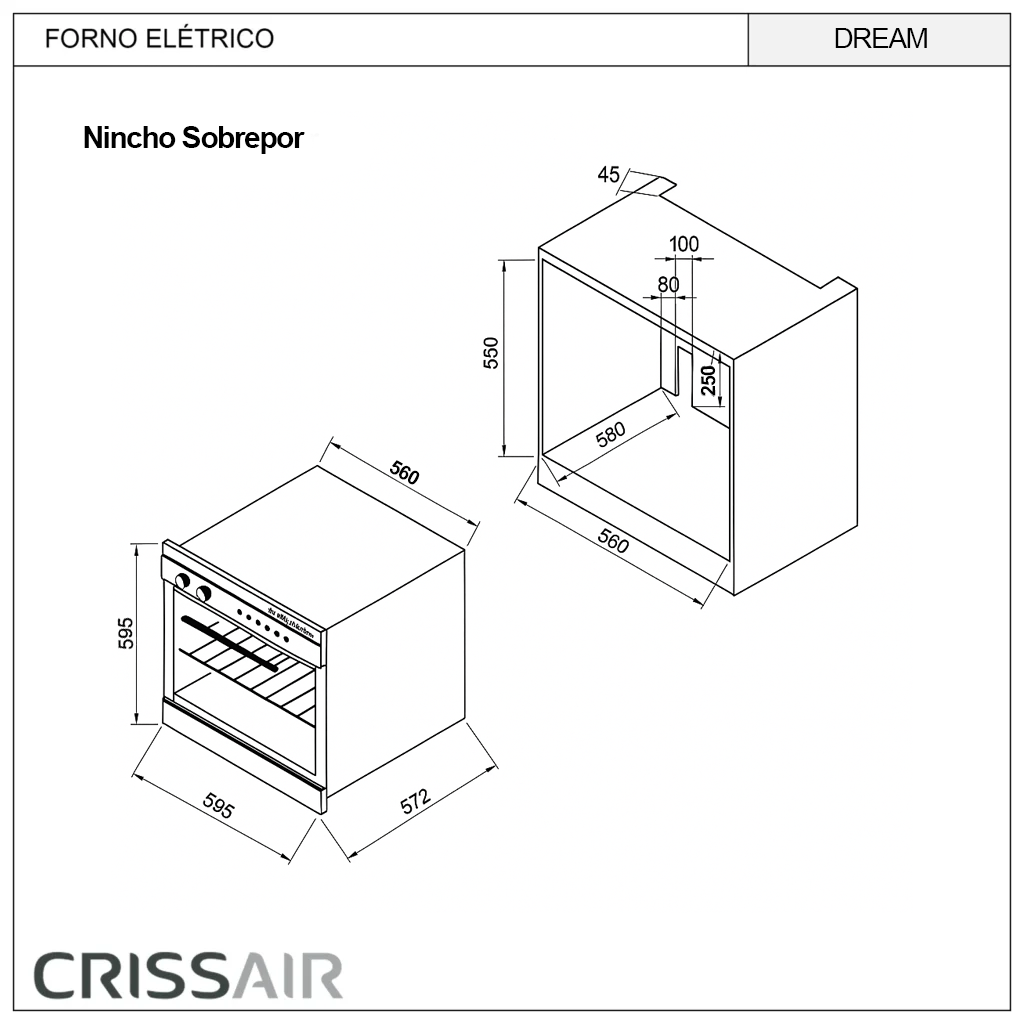 Dimensões do Nicho Sobrepor (LxAxP): 560 x 590 x 580 mm